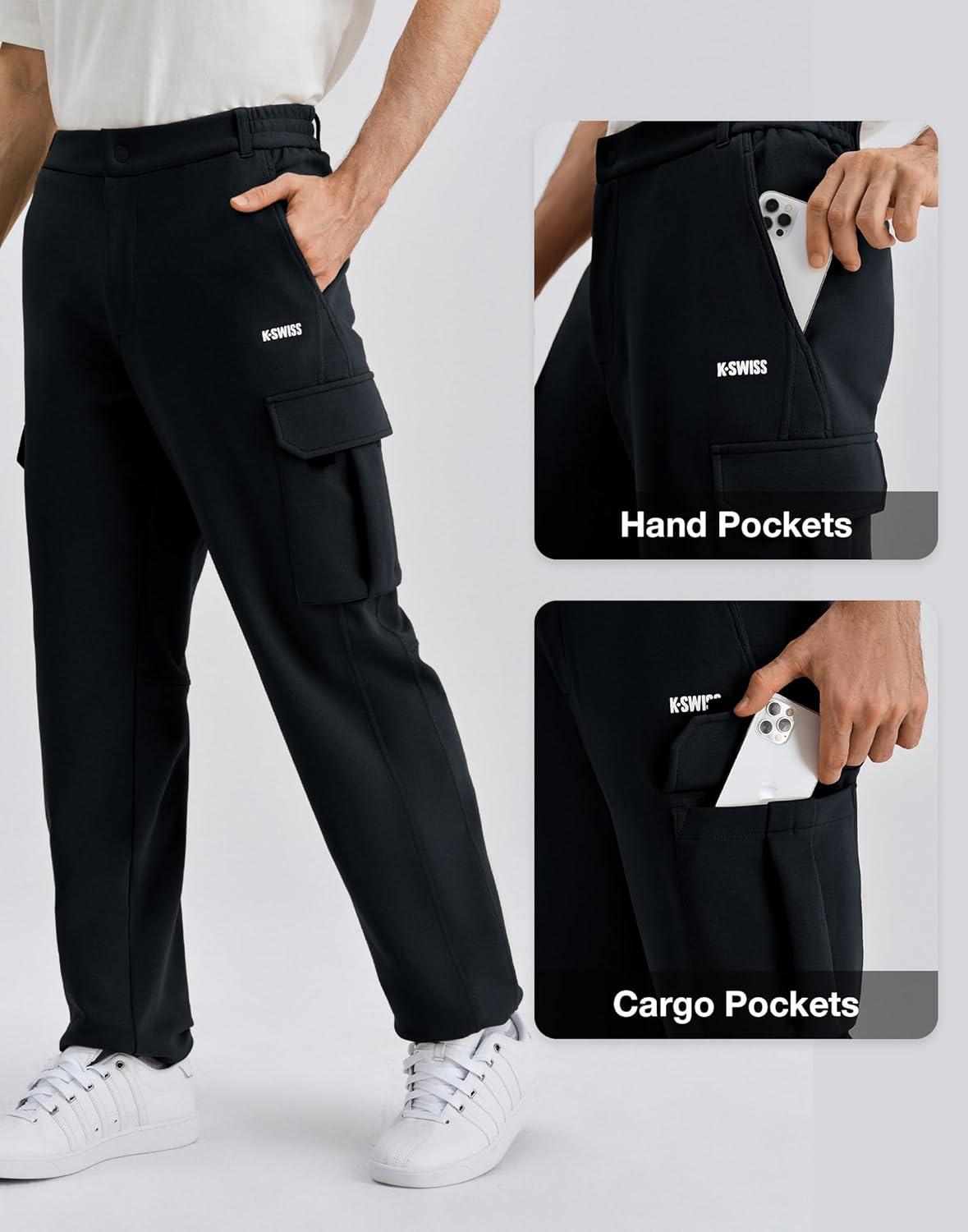 K-Swiss Mens Cargo Pants – Regular Fit Tapered Pants Sweatpants with Pockets for Casual Outdoor(Black/Black)