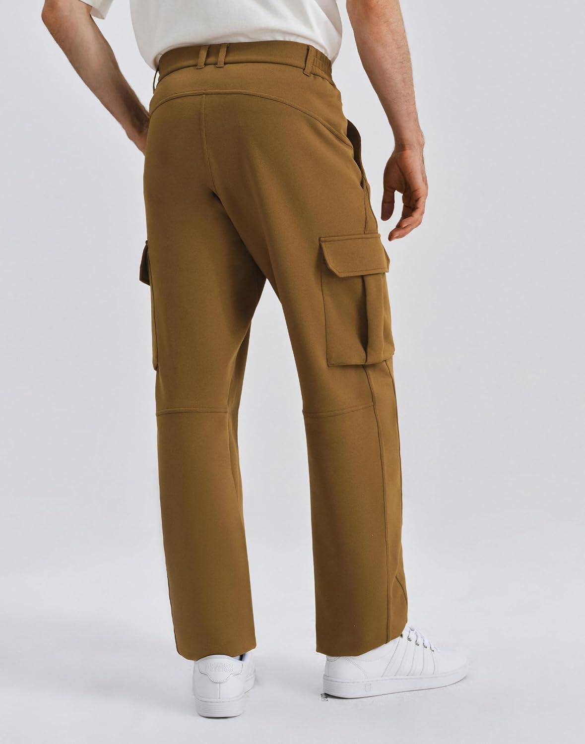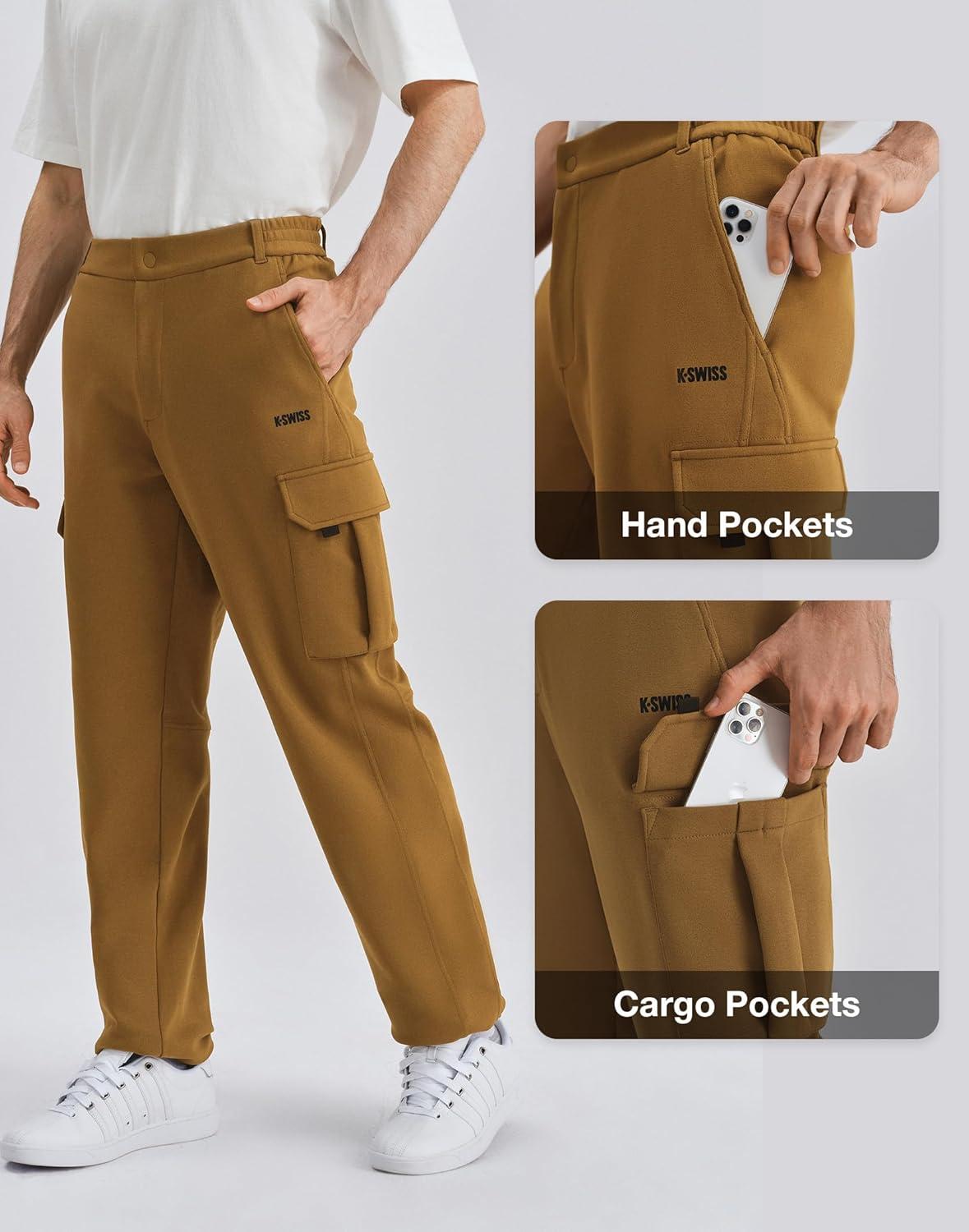 K-Swiss Mens Cargo Pants – Regular Fit Tapered Pants Sweatpants with Pockets for Casual Outdoor(Green/Brown)