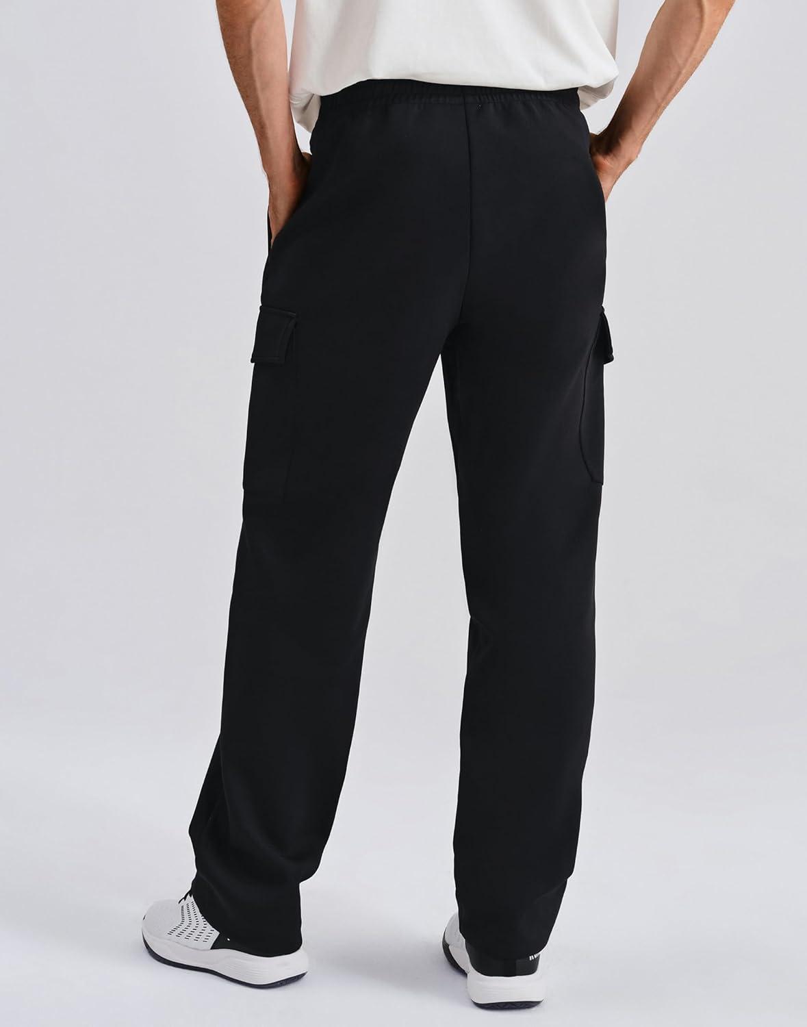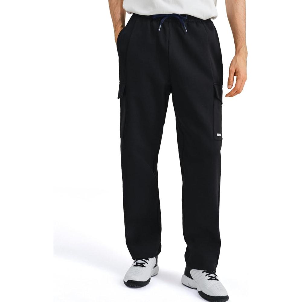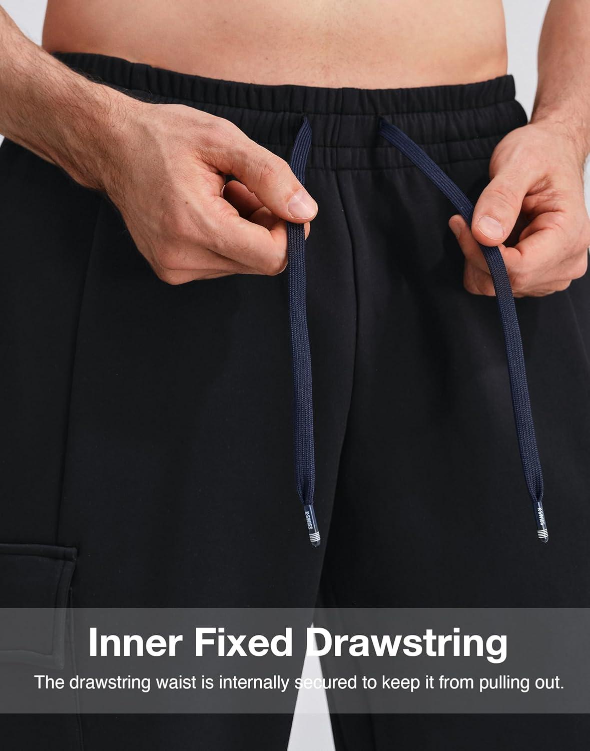 K-Swiss Mens Cargo Pants – Relaxed Fit Tapered Pants Sweatpants with Drawstring for Casual Lounge Outdoor(Black/Black)