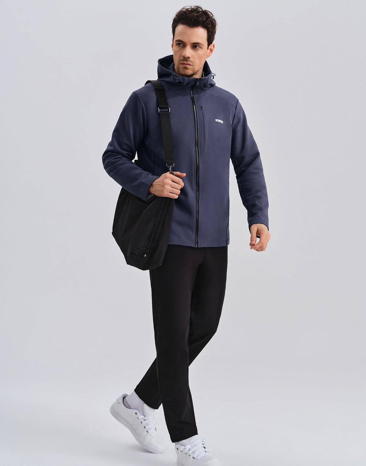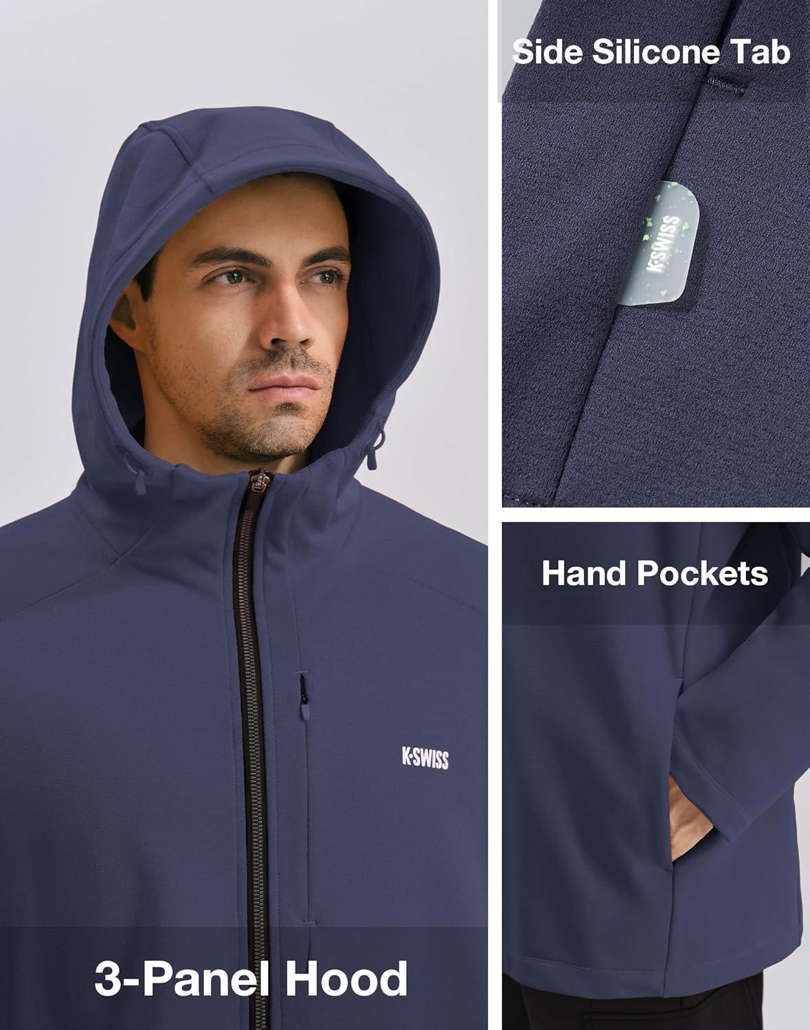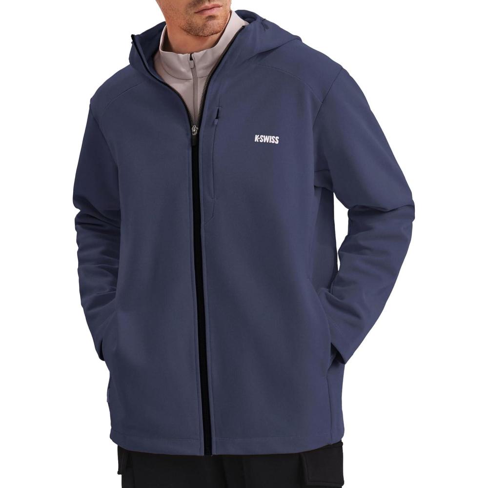 K-Swiss Mens Lightweight Softshell Jacket – Oversized Hooded Zip Up Coat with Front Zipper Pocket for Casual Outdoor Winter(Grey/Purple/Blue)