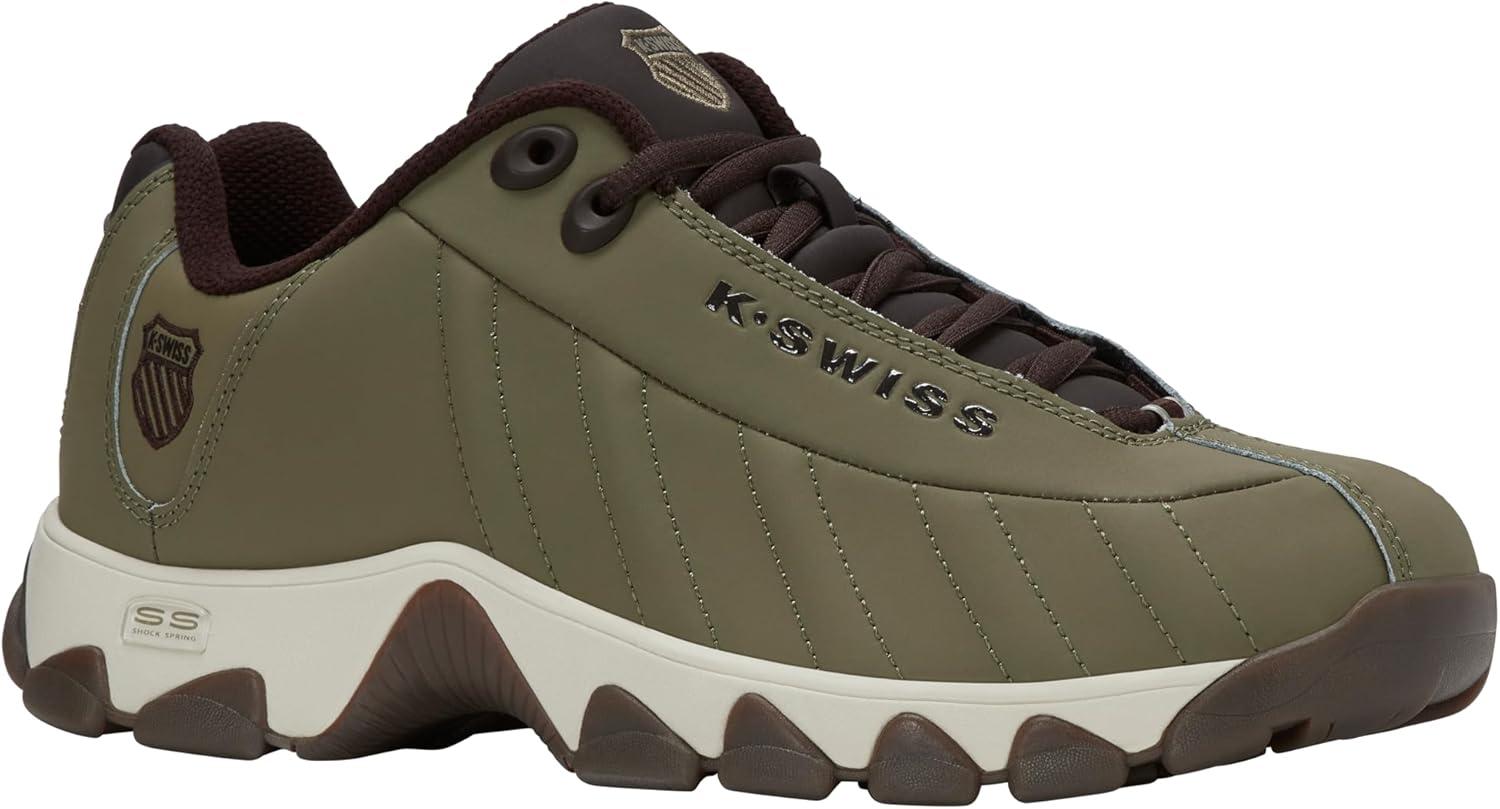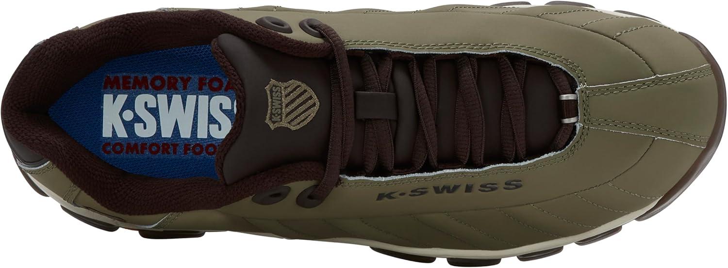K-Swiss Men’s ST329 CMF Sneaker, Wide Tennis Dad Walking Shoes Leather Upper(Burnt Olive/Light Gray/Black Coffee/Dark Gum)