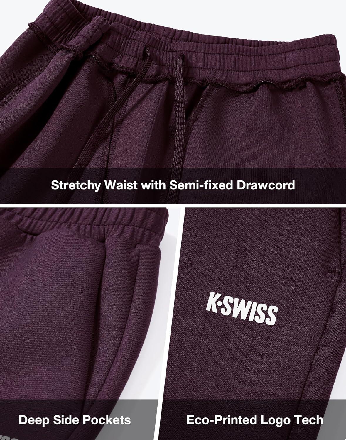 K-Swiss Men’s Sweatpants with Pockets – Lightweight & Breathable Joggers for Men, Cuffed Track Pants for Casual Lounge(Purple)