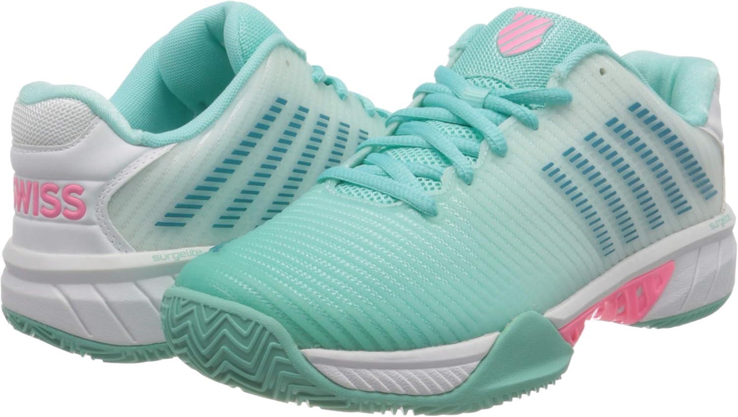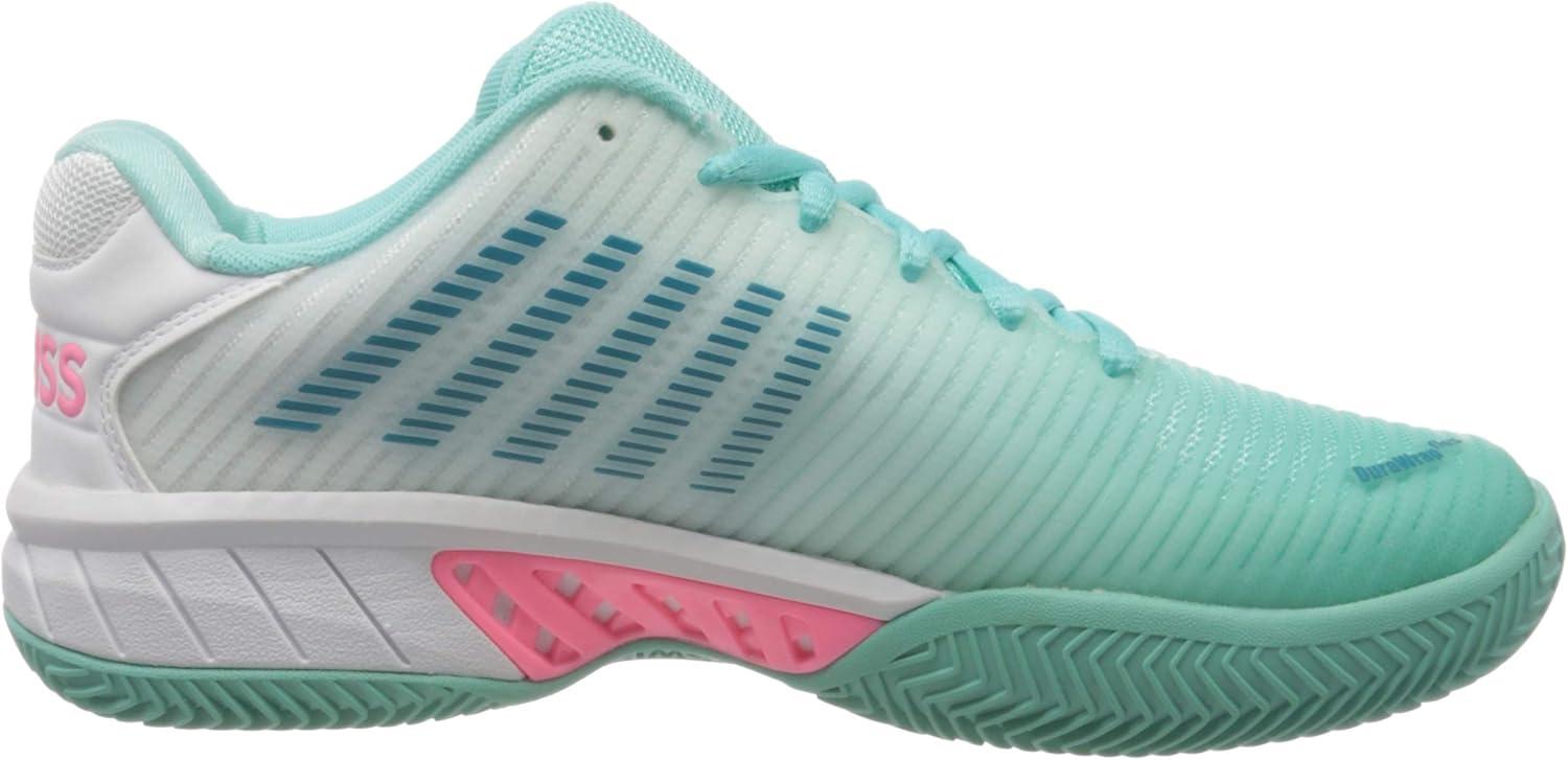 K-Swiss Women’s Hypercourt Express 2 HB – Clay Court Tennis Shoe(Blue (Aruba Blue/White/Soft Neon Pink 439))