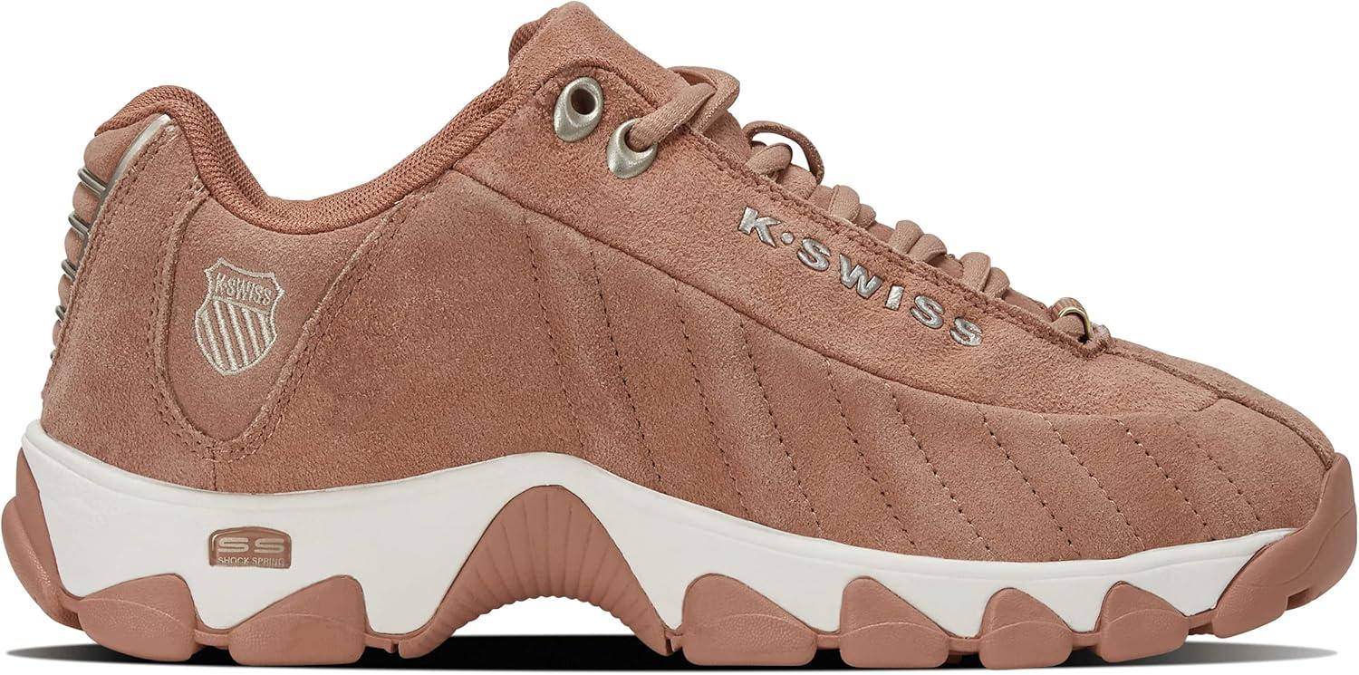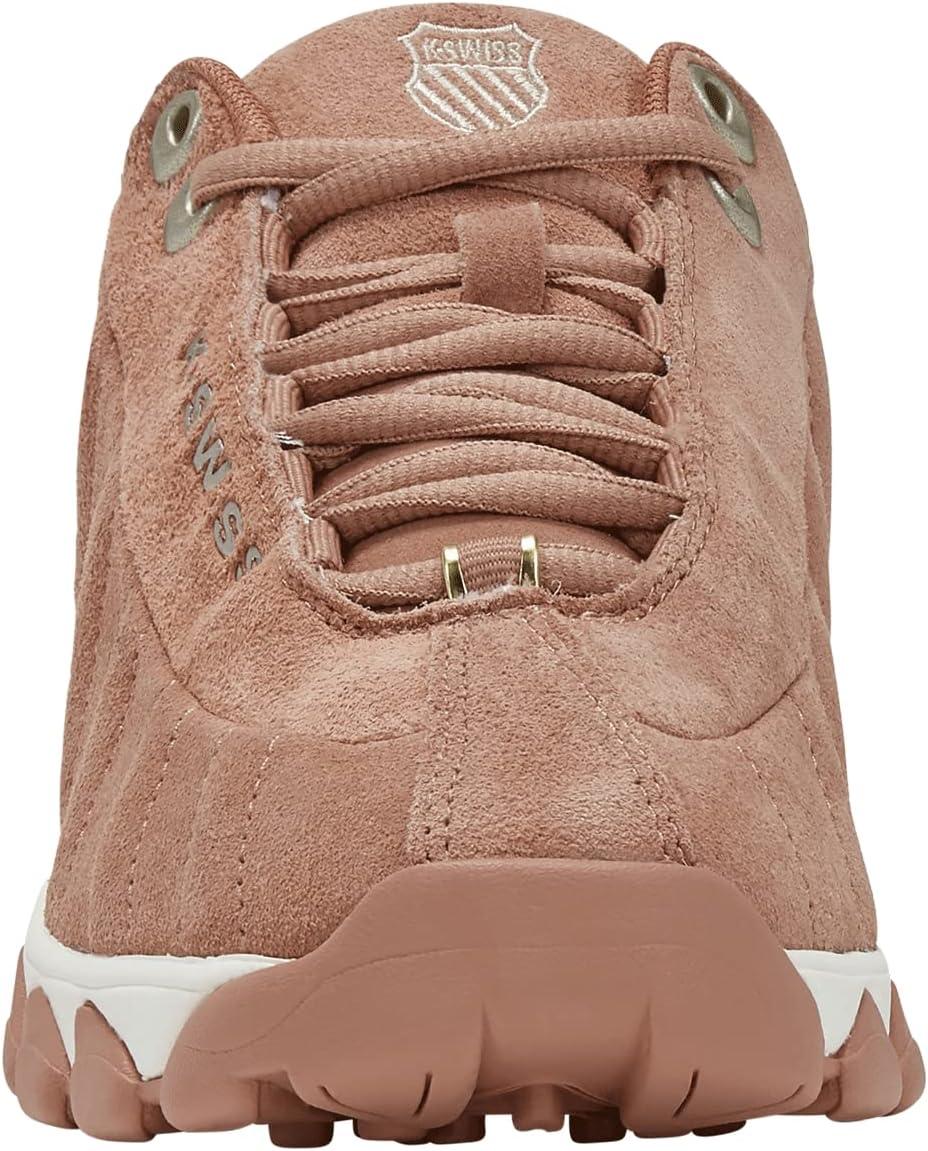 K-Swiss Women’s ST329 CMF Sneaker, Wide Tennis Walking Leather Shoes(Oyster Mushroom/Cameo Rose/White)