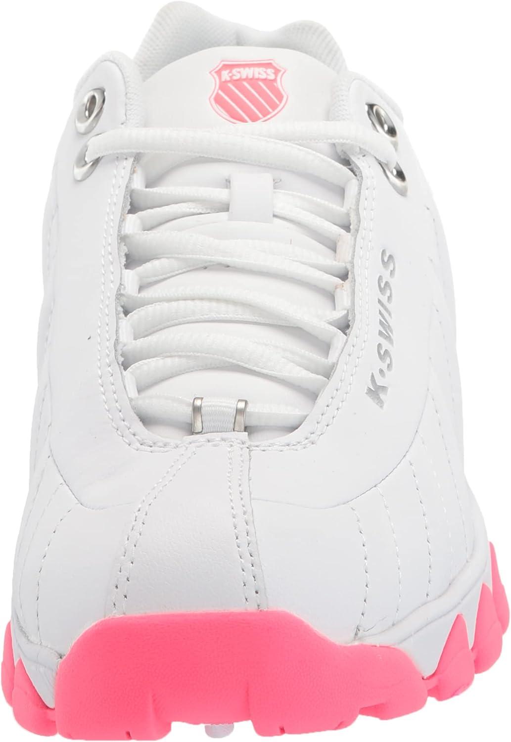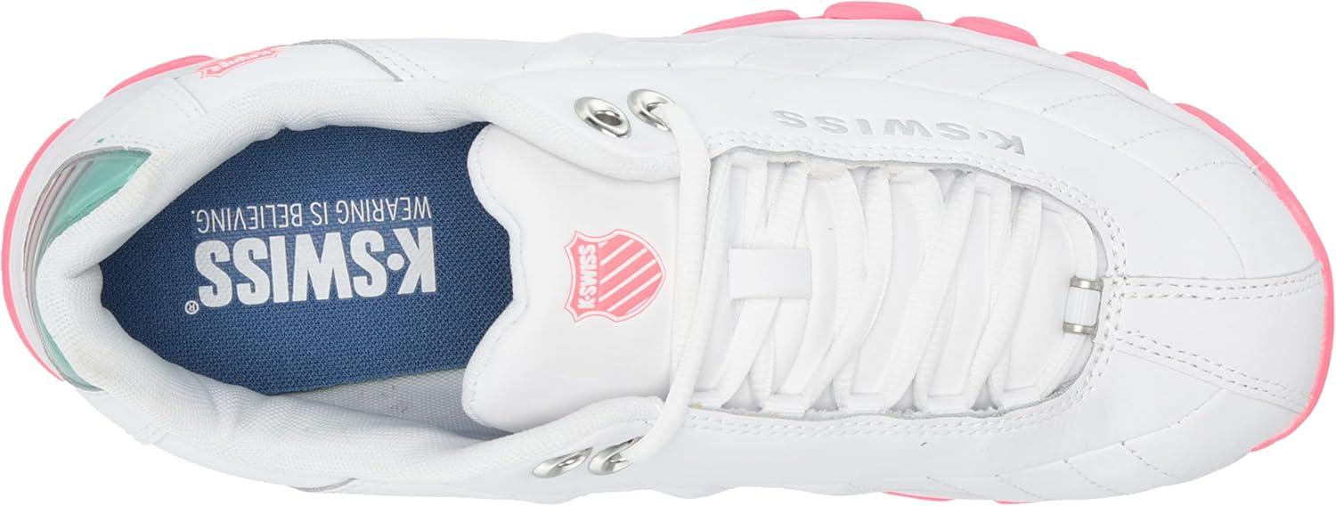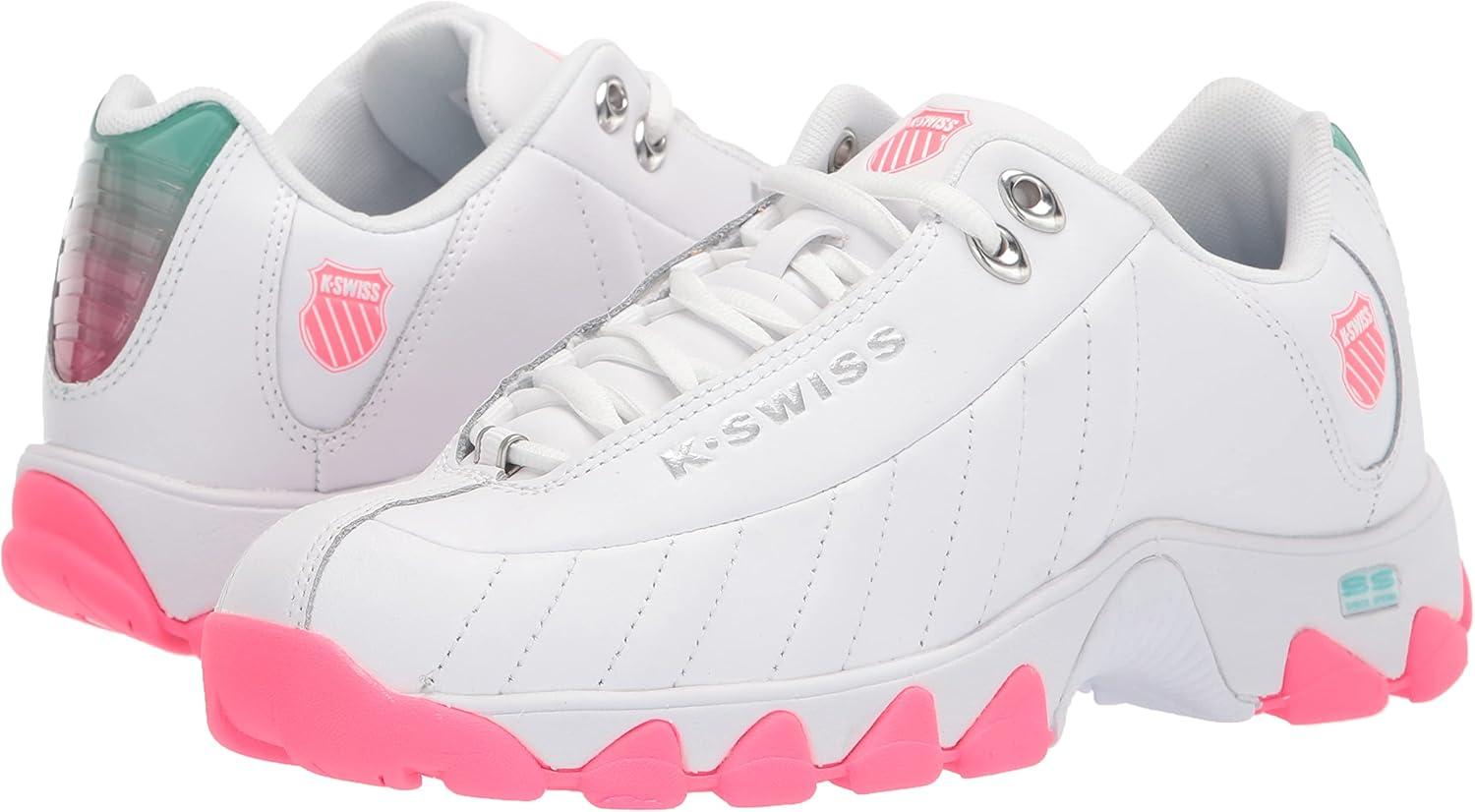 K-Swiss Women’s ST329 CMF Sneaker, Wide Tennis Walking Leather Shoes(White/Fluo Pink/Blue Turquoise/Gel)