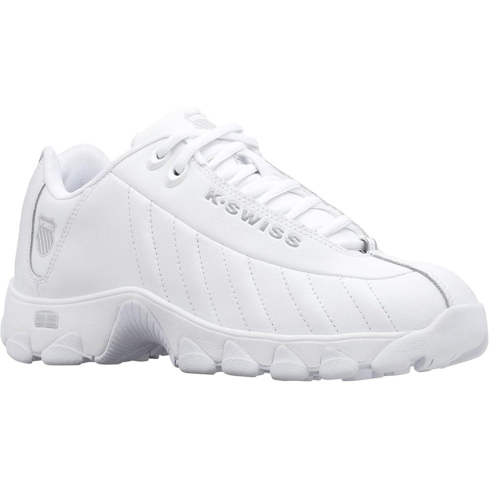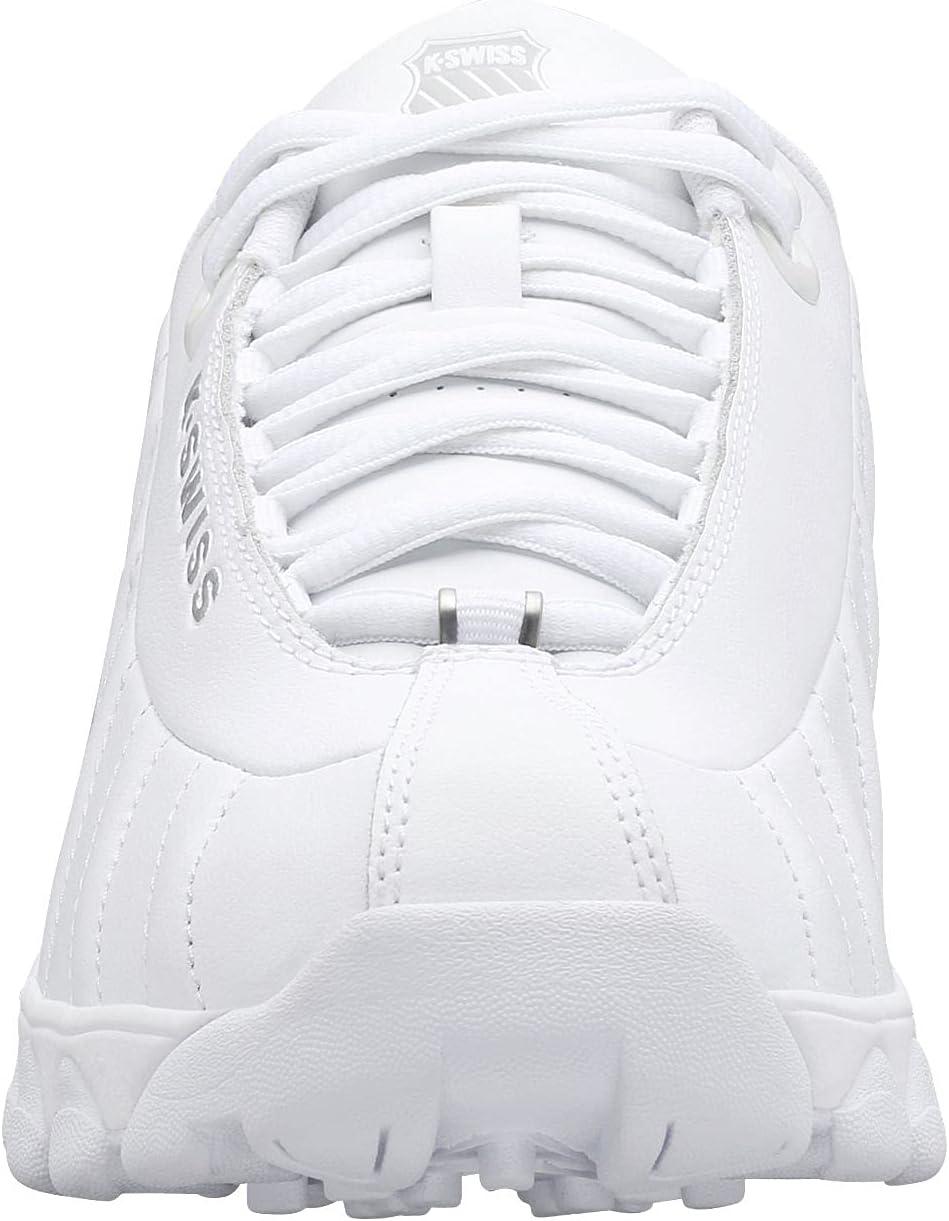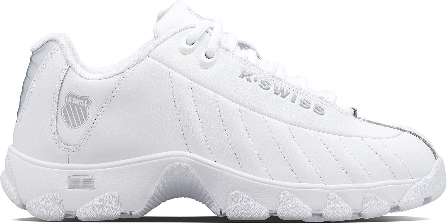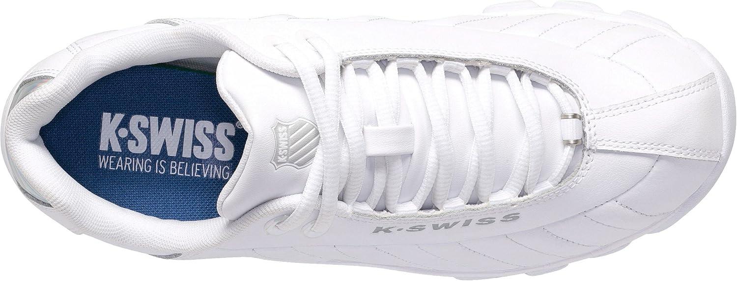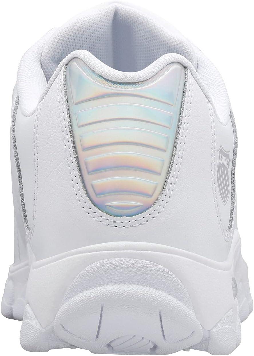 K-Swiss Women’s ST329 CMF Sneaker, Wide Tennis Walking Leather Shoes(White/Iridescent/Gel)