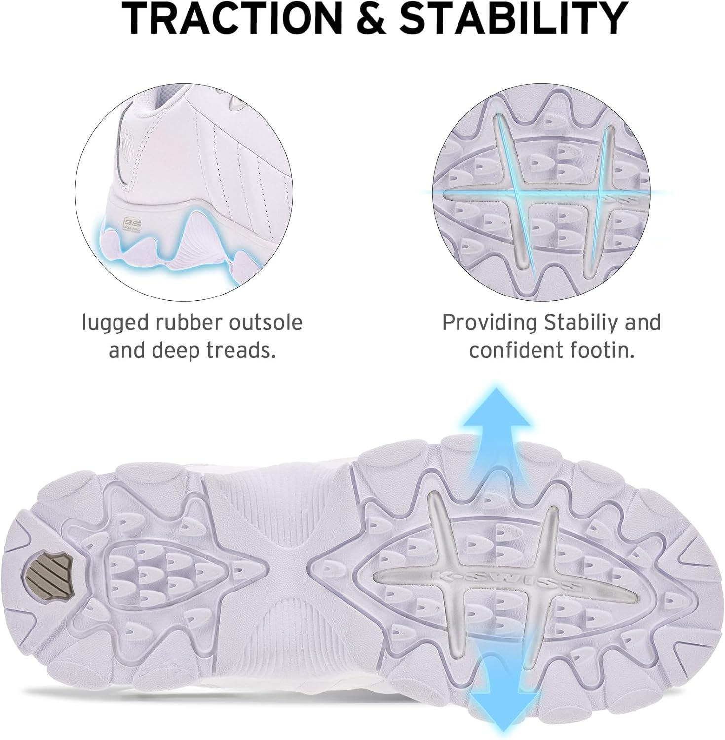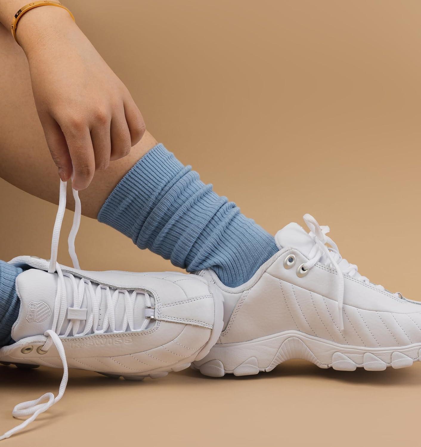 The ST329 is a longtime staple of the K-Swiss footwear line up, introduced as the original tennis training shoe and now a cult-classic. Designed and built to last, this mid top sneaker features a full leather upper, durable rubber outsole and sturdy tread for enhanced stability. The ST329 Heritage’s K-EVA cushioned midsole and premium memory footbed ensure maximum comfort in classic style.